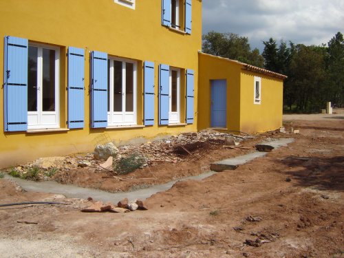 plus tard. Le joint de dilatation est en place entre la maison et la